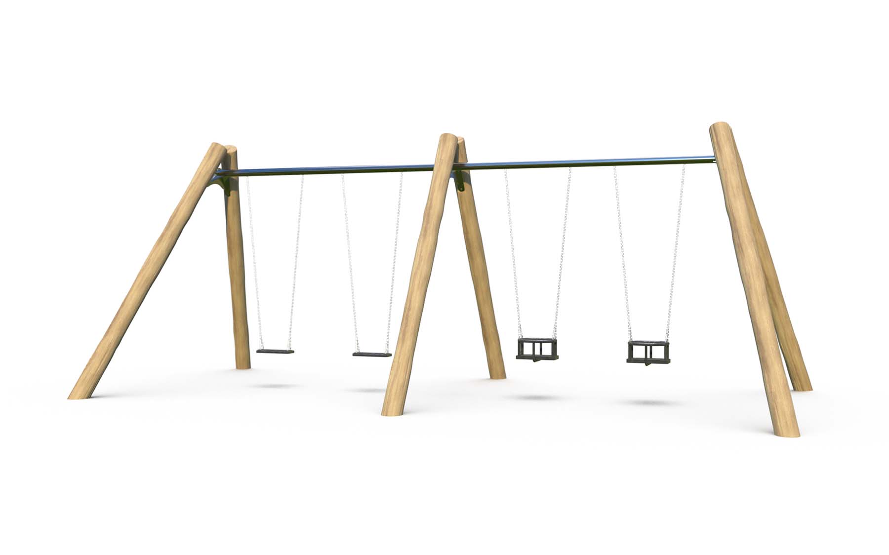 The A Frame Swing No.2 Flat & Toddler Seats is a premier example of natural playground equipment, designed specifically for children aged 2-12 years. This swingset, part of our Swings category, is crafted from sustainable hardwood robinia, ensuring durability and safety in outdoor play. Its design promotes physical activity and social interaction, making it an ideal addition to any natural playground environment. Complies with EN 1176, ASTM, and CSA standards.