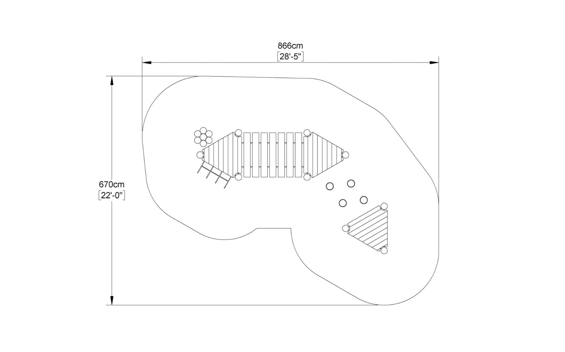 The Rustic Climbing Frame No.5 is a prime example of natural playground equipment, designed to enhance children’s play experiences while ensuring safety and durability. This climbing frame, part of our Climbing Frames category, is constructed from sustainable robinia hardwood, providing a robust and eco-friendly solution for outdoor play areas. Featuring a platform, bridge, net climb, and stepping stumps, it encourages physical activity and imaginative play for children aged 2-5 years. Complies with EN 1176, ASTM, and CSA standards.